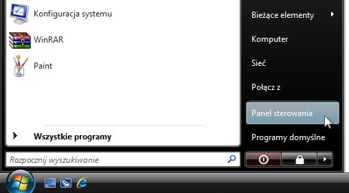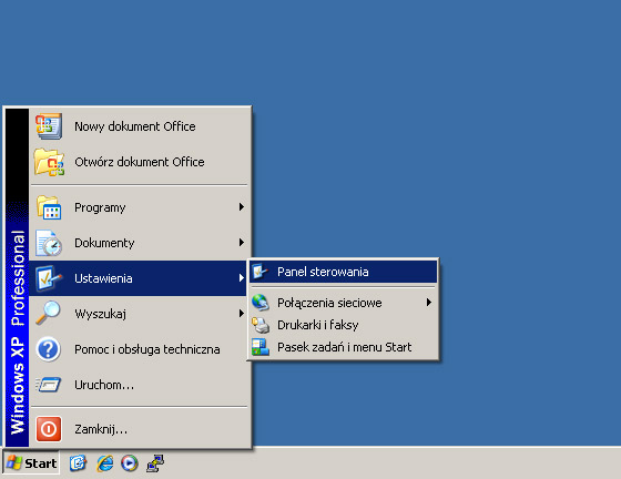 - Po zalogowaniu przechodzimy do Panelu sterowania – klikamy menu Start i wybieramy Panel sterowania