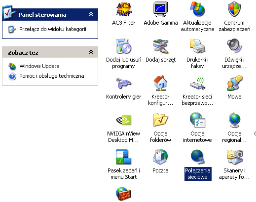 - W oknie Panelu Sterowania klikamy ikonę Połączenia sieciowe.