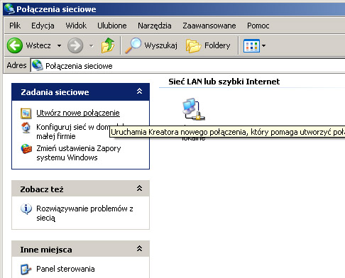 - W oknie Połączenia sieciowe klikamy na Utwórz nowe połączenie.
