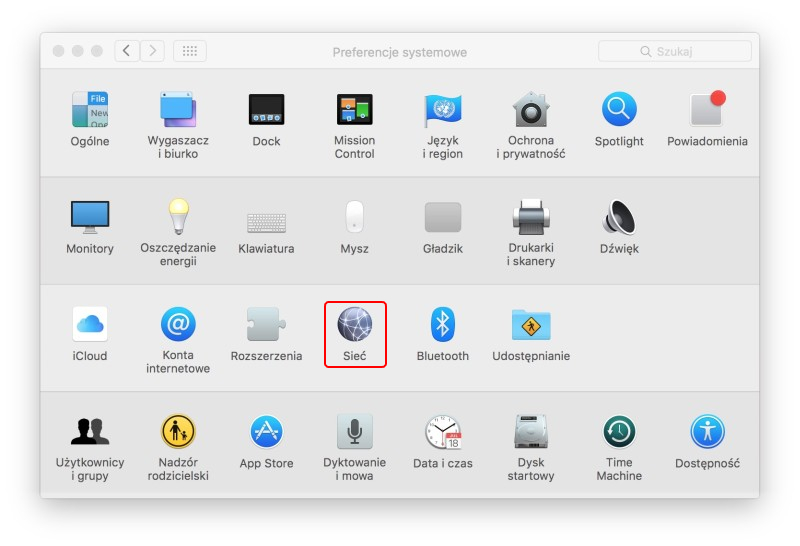 - Przejdź do Preferencje systemowe, następnie z sekcji Internet i połączenia bezprzewodowe wybierz Sieć.