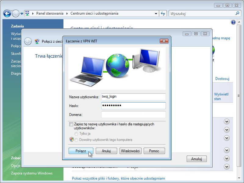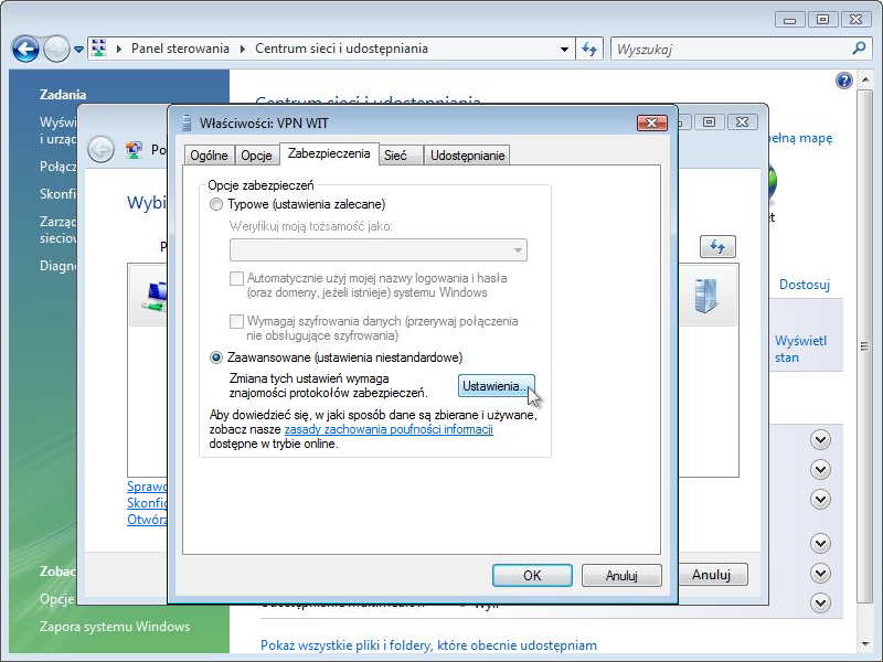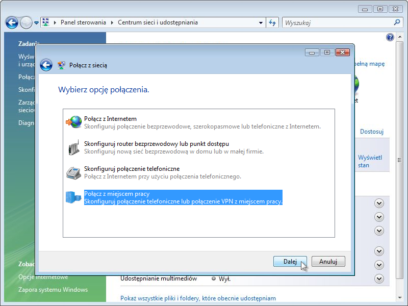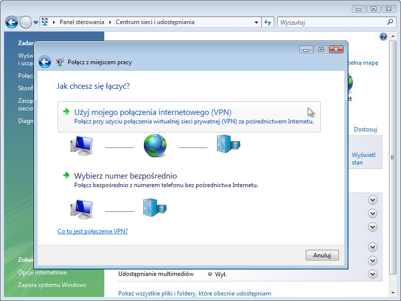 Poniżej znajduje się instrukcja konfiguracji połączenia z bramą VPN w systemie Windows Vista.