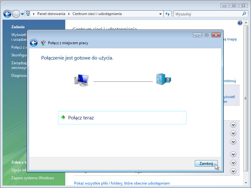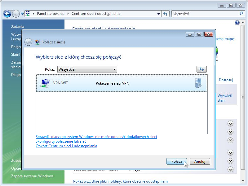 - Wracamy do okna Centrum sieci i udostępniania i wybieramy odnośnik Połącz z siecią
