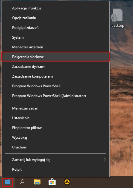 - Klikamy prawym przyciskiem myszy na ikonie Windows Start i wybieramy Połączenia sieciowe