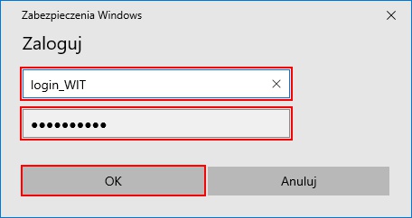 - Wpisz hasło systemowe WIT i kliknij OK.