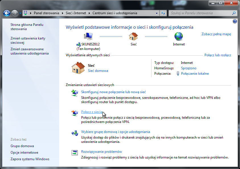 - Wracamy do okna Centrum sieci i udostępniania i wybieramy odnośnik Połącz z siecią.