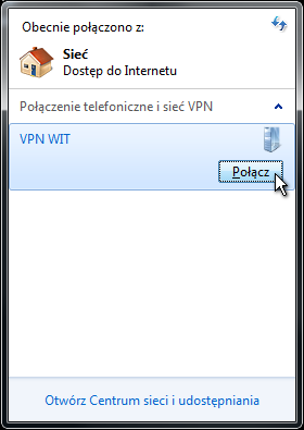 - Klikamy w połączenie VPN WIT a następnie Połącz.